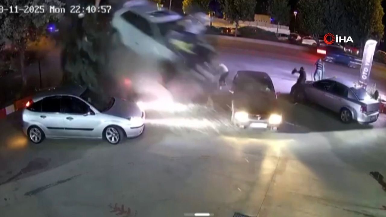 Ankara Sincan’da sürücüsünün direksiyon hakimiyetini kaybettiği otomobil, kaldırımdan fırlayarak oto yıkamaya ve çevredeki araçlara çarptı. Kazada 3 kişi yaralandı, kaza anı güvenlik kamerasına yansıdı.