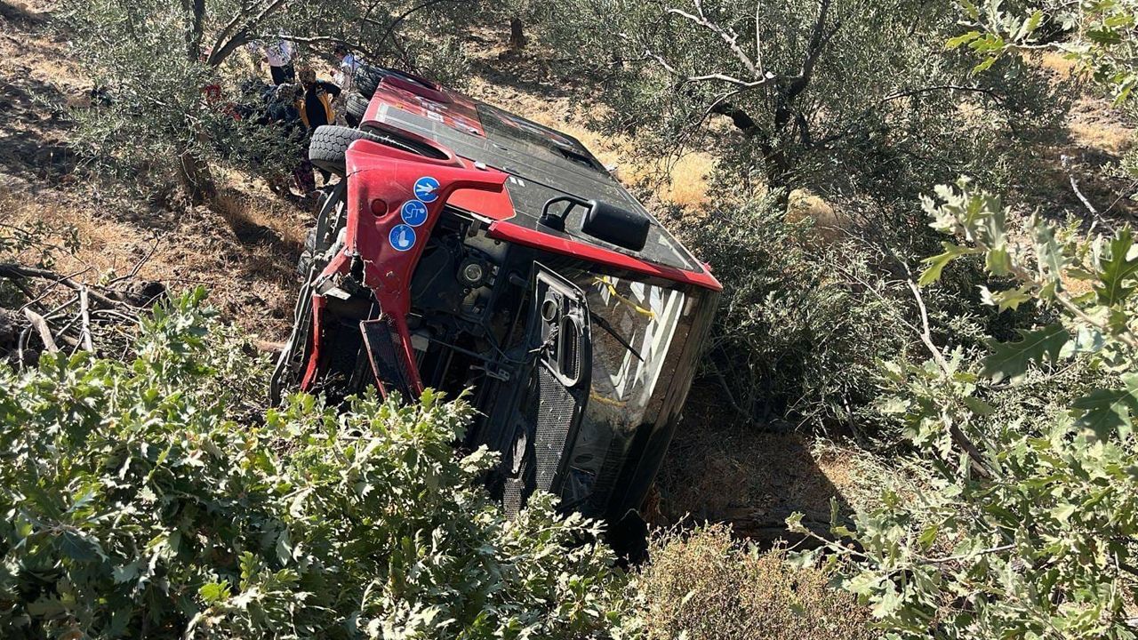 Balıkesir'de belediyeye ait halk otobüsü zeytinliğe devrildi: Yaralılar var