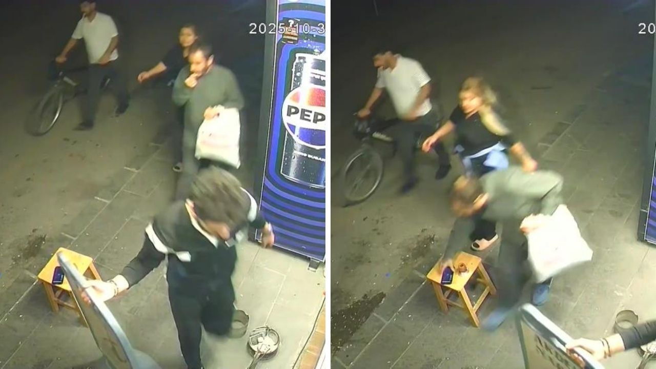 Bu sırada arkadaşlarıyla kaldırımda çekirdek yiyerek yürüyen Y.Ş. (43), A.M.'nin tabureye bıraktığı cep telefonunu profesyonel bir şekilde alıp yoluna devam etti. O anlar güvenlik kamerası tarafından görüntülendi.