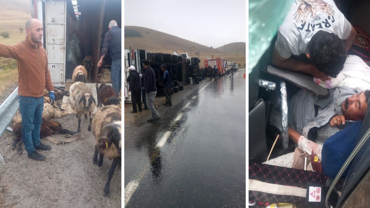 TIR’da taşınan koyun sürüsünden 2’si can verdi. Yolda çaresizce dağılan koyunların görüntüsü, kaza yerindeki dramı daha da derinleştirdi. İnsanların yanında masum hayvanların da canının yandığı bu tablo, bölgede adeta hüzün fırtınası estirdi.