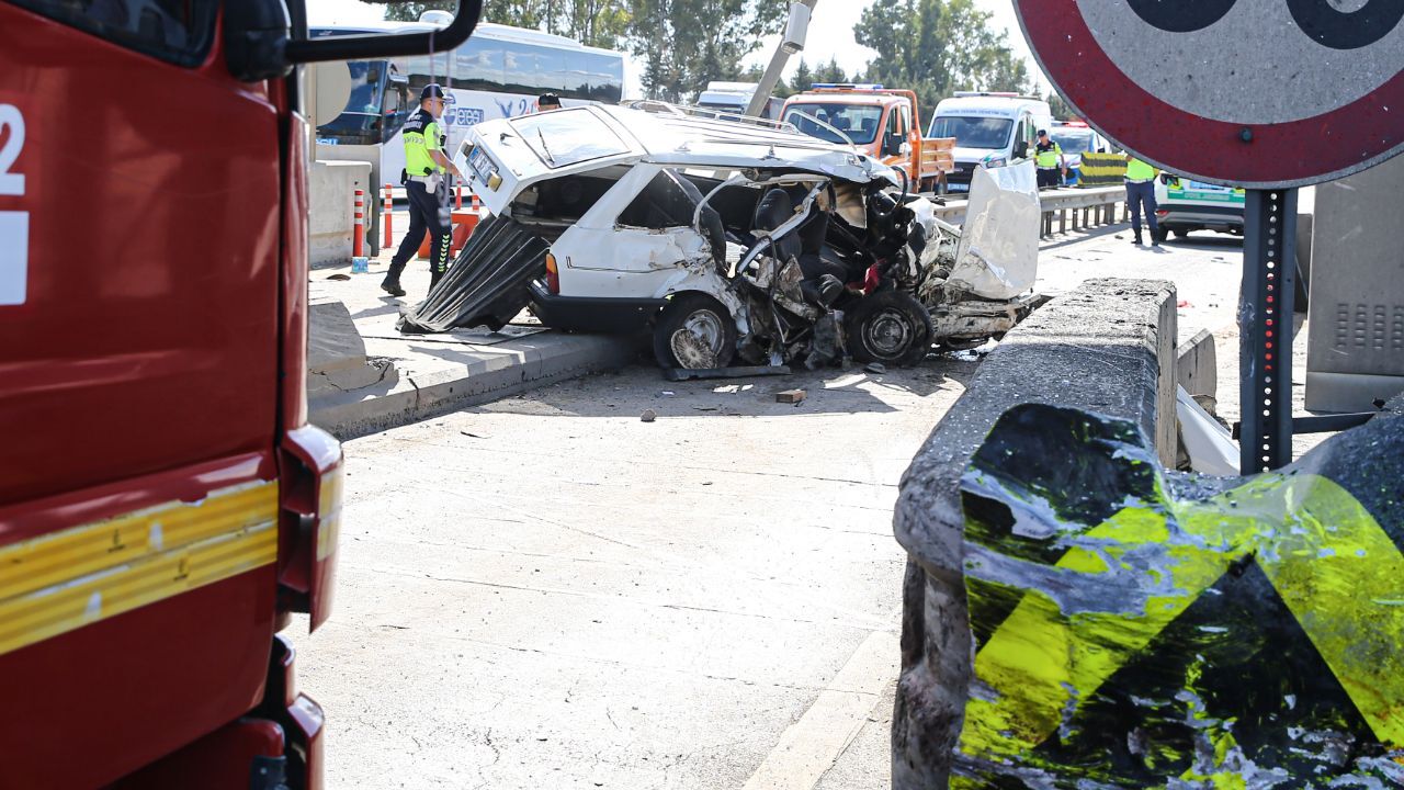 Mersin'de otoyol gişelerinde bir otomobil bariyere çarptı. Hurdaya dönen araçtaki 2 kişi hayatını kaybetti.