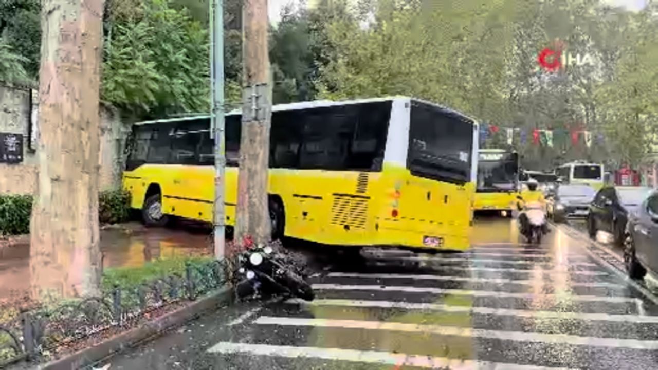 İstanbul'da sağanak kaza getirdi! İETT otobüsü kaldırıma çıktı