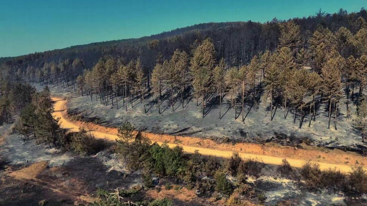 Alevlerin etkisiyle geniş bir alanın zarar gördüğü yangın sonrası geriye acı bir manzara kaldı.