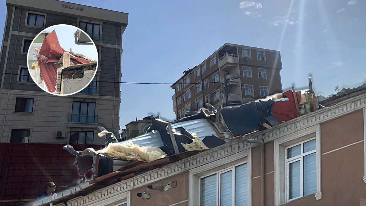 Kartal'da kuvvetli rüzgarda 7 katlı binanın çatısı parçalanarak uçtu
