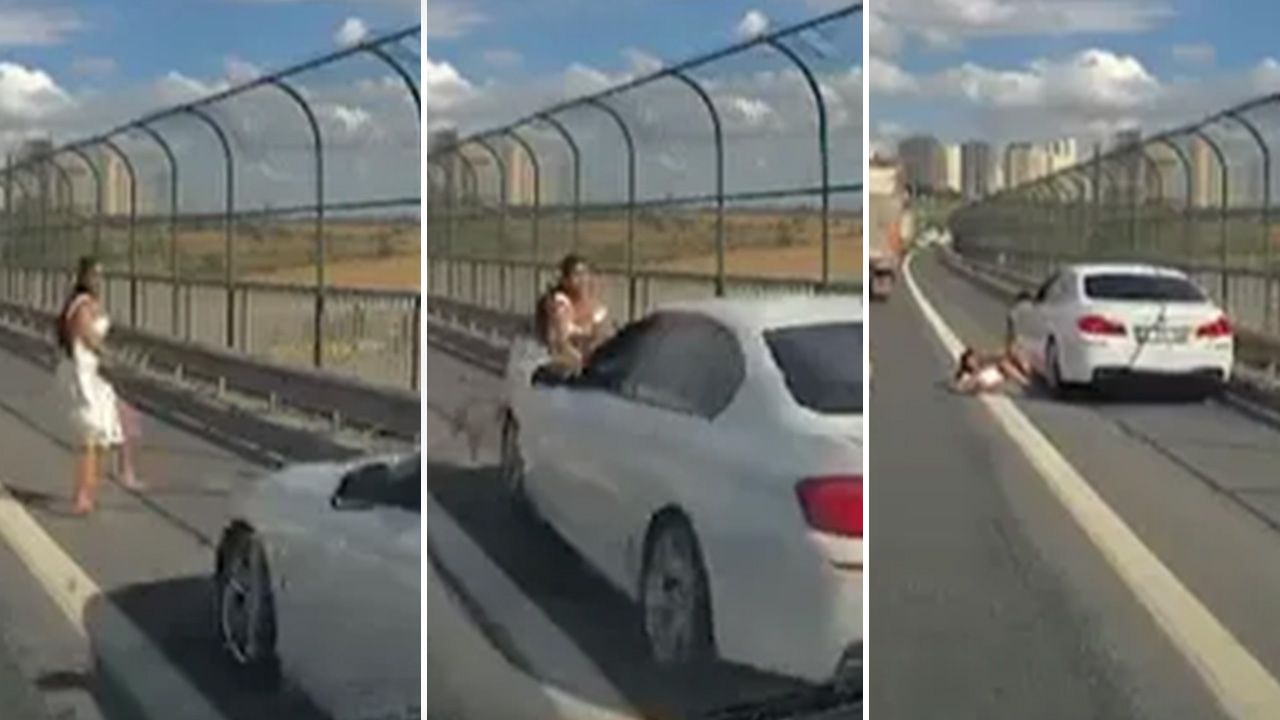 Avcılar’da viyadükte mahsur kalan bir kediyi kurtarmaya çalışan kadın, emniyet şeridinden gelen otomobilin çarpması sonucu hafif şekilde yaralandı. Olay anı, yoldan geçen bir aracın kamerasına yansıdı.