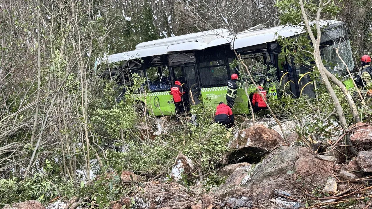 Kocaeli Kartepe'de belediye otobüsü şarampole yuvarlandı!