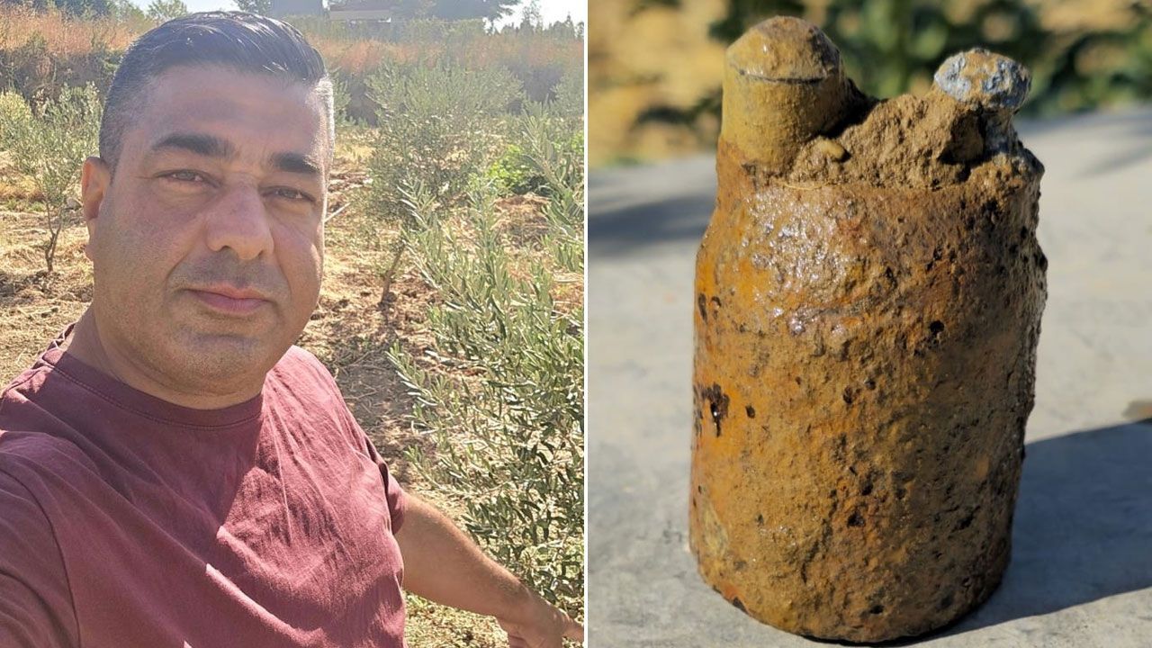 Manisa'da bir garip olay: Zeytin bahçesinde asırlık top mermisi bulundu