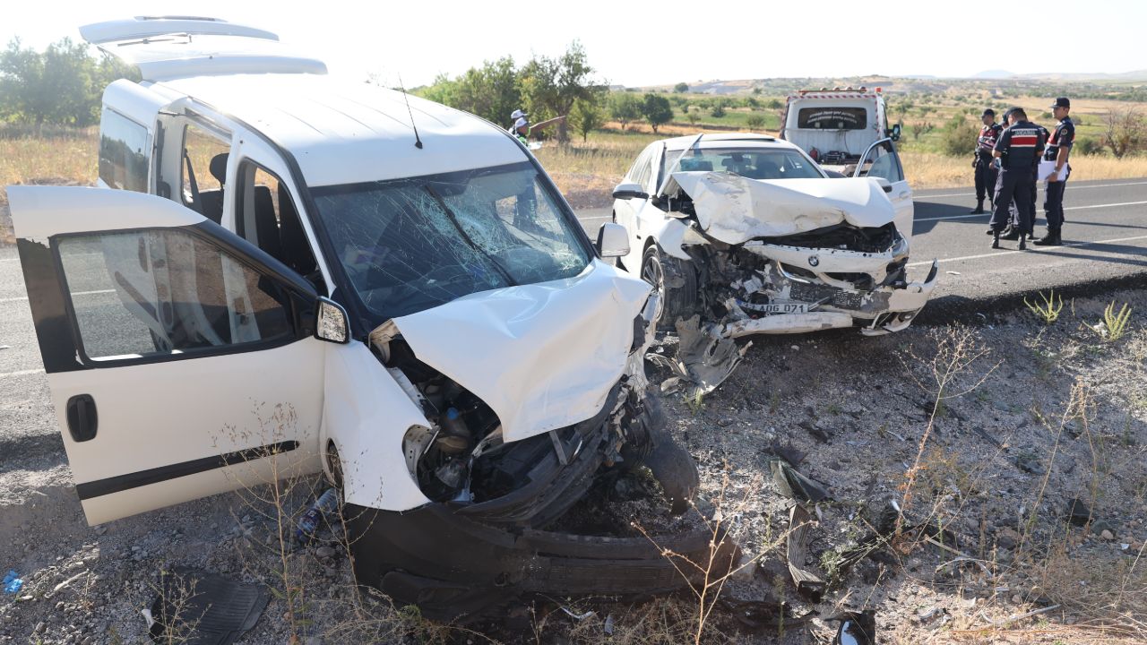 Korkutan kazada iki araçta bulunan 4'ü çocuk 14 kişi yaralandı. Yaralılar, ambulanslarla çevredeki hastanelere kaldırıldı.