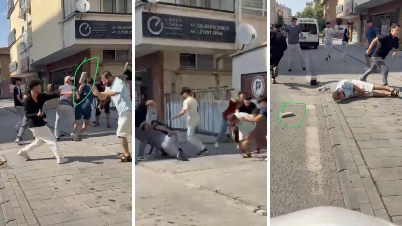 Sokak ortasında facia anları! Kavga ettikleri şahsa taşla saldırdılar