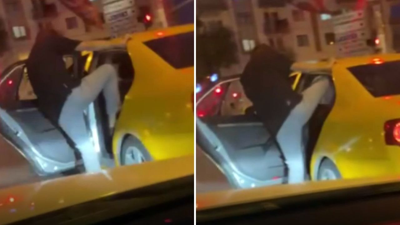 Taksideki kadını defalarca tekmeledi! Ankara'da korkunç görüntü