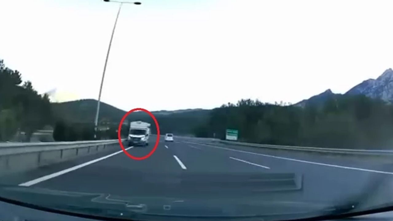 Ekipler, aracın sürücüsüne ceza kesti. Kamyonetin ters yönde ilerlemesi araç kamerasıyla görüntülendi.