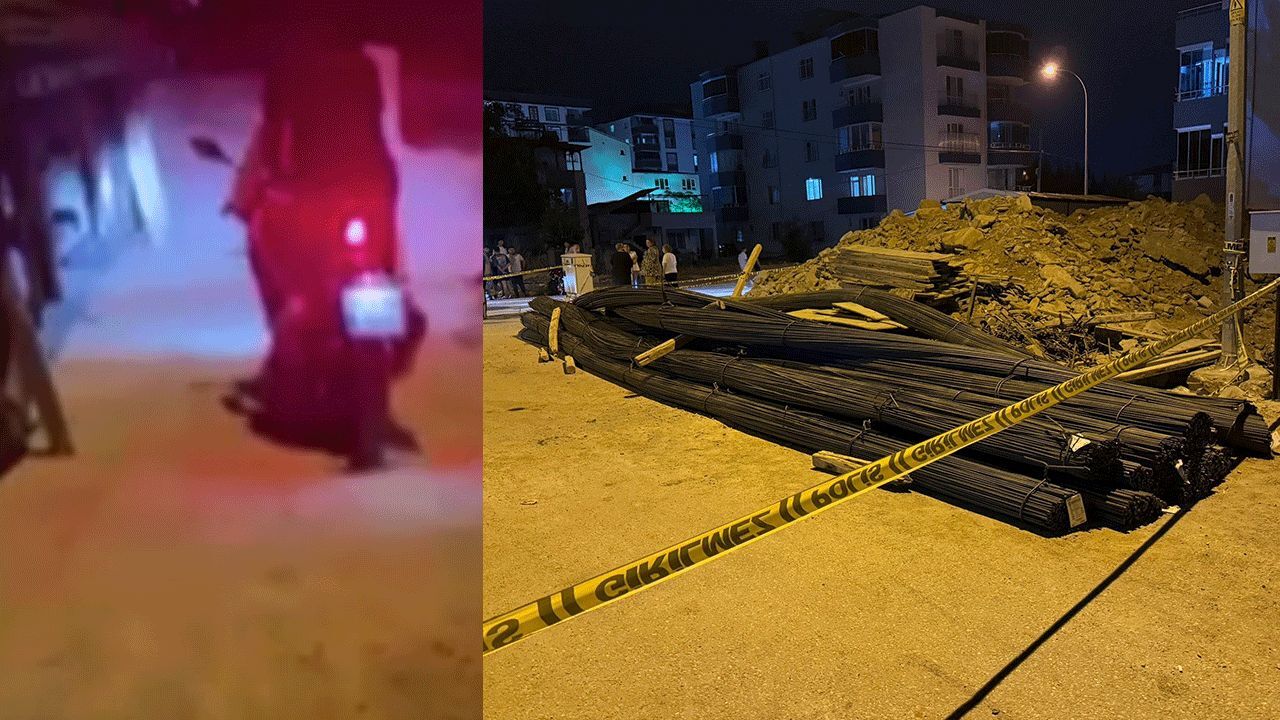 Osmaniye'de inşaat alanına tırda yüklü demirler indirilirken feci bir olay yaşandı. Tır şoförünün video çektiği sırada aracın yanından geçen motosikletli iki kişinin üstüne inşaat demirleri devrildi.