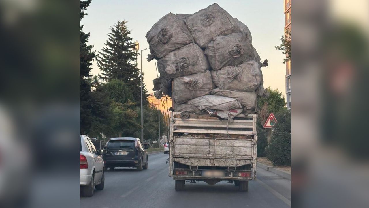 Üzerinde büyük boyutlardaki çuvallarla hareket eden kamyonet, hem trafikteki diğer araçlar hem de yayalar için büyük tehlike oluştururken, görgü tanıkları aracın özellikle yoğun saatlerde şehir merkezinde bu şekilde dolaşmasının kabul edilemez olduğunu söyledi.