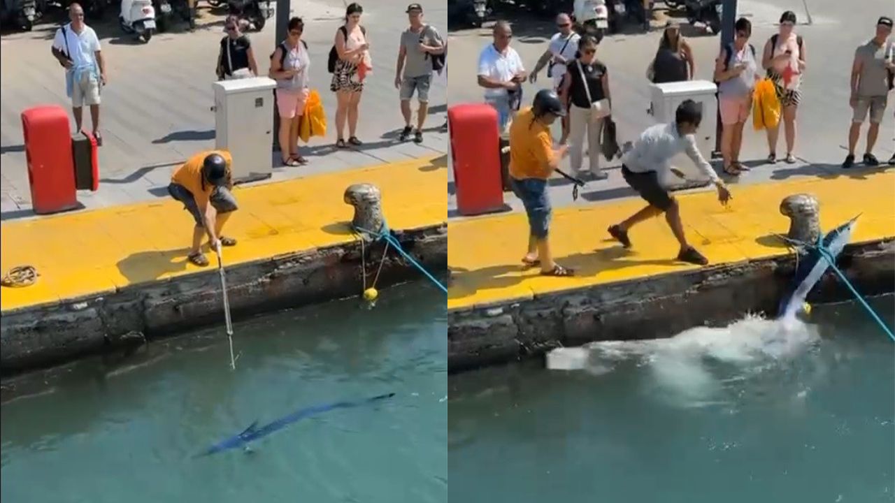 Vatandaşlar tepki gösterdi! Nesli tehlike altındaki balık zıpkınla vuruldu