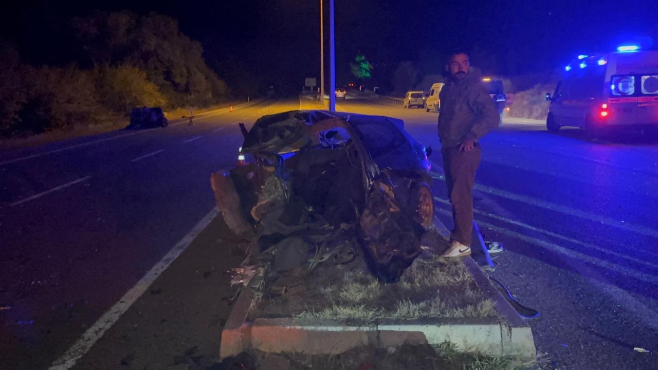 Çarpmanın şiddetiyle araç ikiye bölündü. Yoldan geçen sürücülerin ihbarı üzerine kaza yerine sağlık, polis ve karayolları ekipleri sevk edildi.