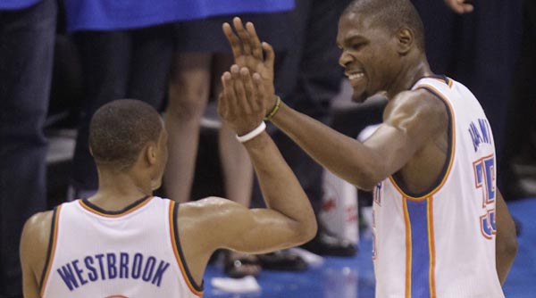 Oklahoma City'deki Chesapeake Energy Arena'da yapılan maç, son çeyreğe kadar Oklahoma Cityli Kevin Durant ve Miami Heat'in yıldızı LeBron James'in kapışmasına sahne oldu. 36 sayı, 8 ribaunt ve 4 asistle gecenin en skorer oyuncusu olan Durant, son çeyrekte attığı 17 sayıyla LeBron James'i durdurmayı başardı ve takımını seride 1-0 öne geçirdi.Oklahoma temsilcisinde galibiyetin mimarlarından biri de 27 sayı, 11 asist ve 8 ribauntla "double-double" yapan Russell Westbrook oldu.
