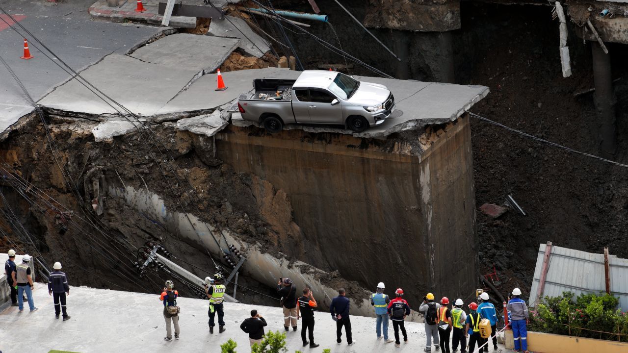 Tayland'da bu sabah yolun çökmesi sonucu yaklaşık 50 metre derinliğinde çukur meydana geldi. Bir araç çukura düşerken, çevredeki ev ve dükkanlar tahliye edildi.