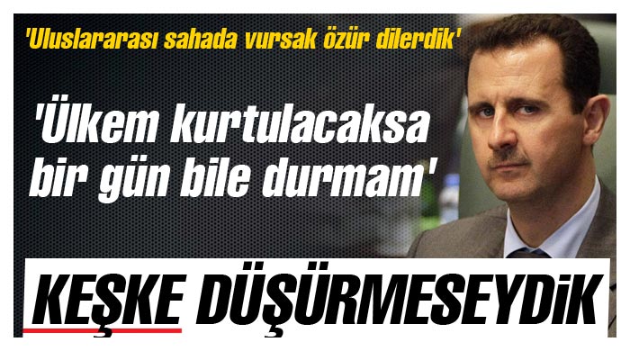 Suriye Devlet Başkanı Esad, Cumhuriyet gazetesine verdiği röportajda, "Uçağın Türkiye'ye ait olduğunu düşürdükten sonra öğrendik. Yüzde yüz 'keşke düşürmeseydik' diyorum" diye konuştu.