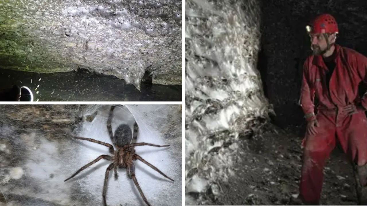 Araştırmacılar, örümcek ağının mağaranın girişine yakın, dar ve alçak tavanlı bir geçidin duvarında 100 metrekareyi aşan bir alana yayıldığını belirtti.