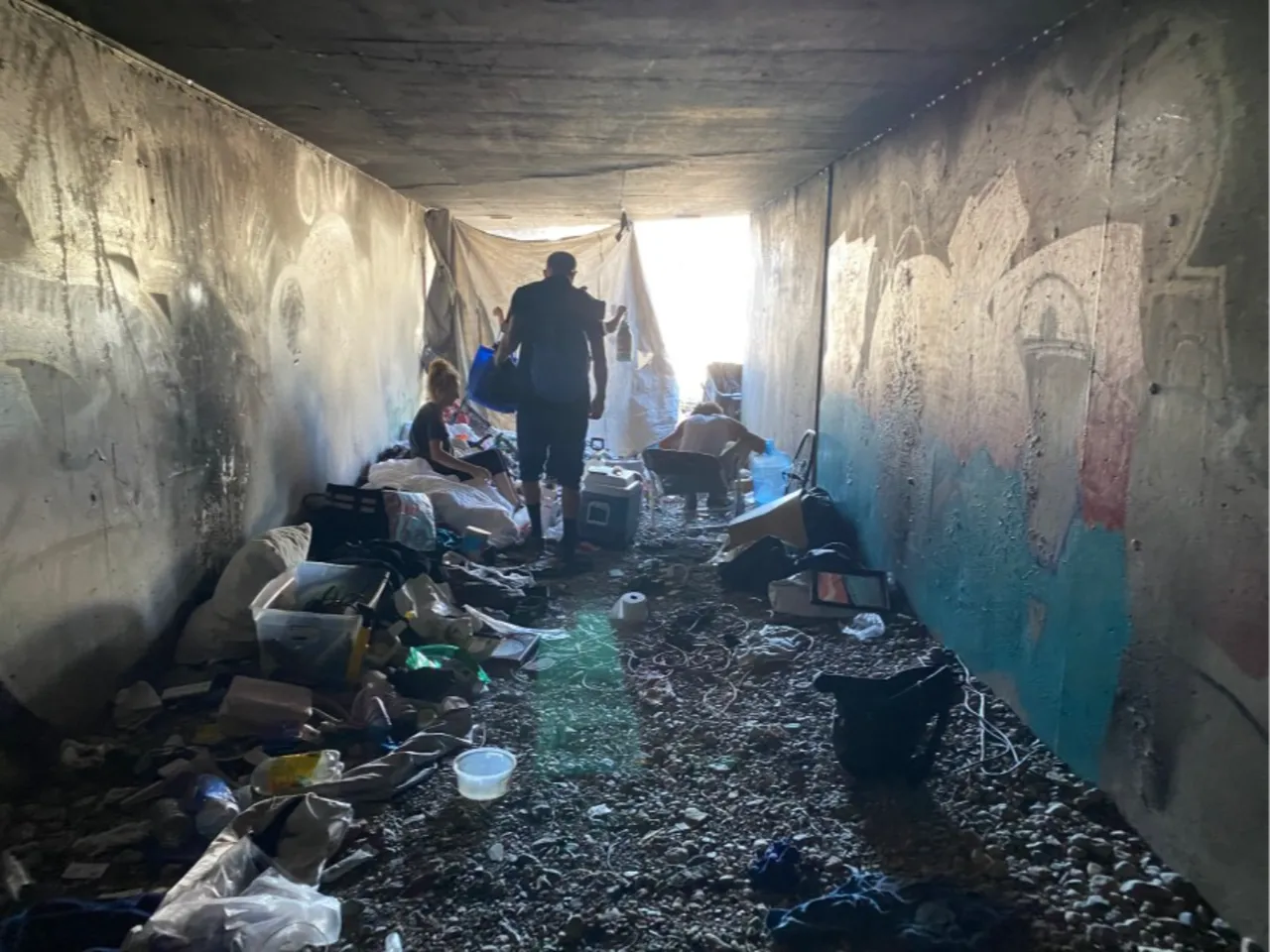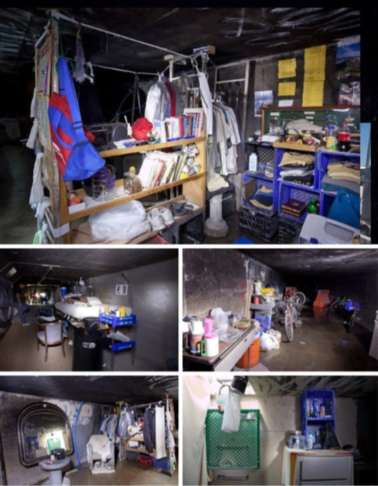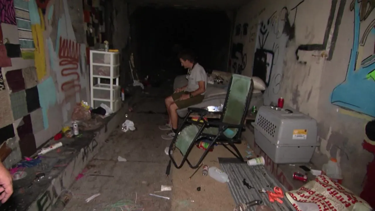 Yüksek yaşam maliyetleri, kumar bağımlılığı ve halka açık alanlardaki kamp yasaklarından kaçınma gibi nedenlerle sığınan bu insanlar, aşırı sıcaklardan ve soğuktan korunmak için bu tehlikeli labirenti mesken tutuyor.