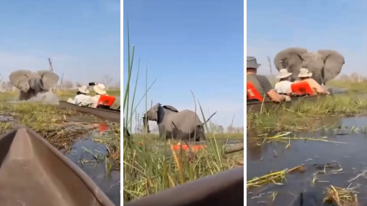 Güney Afrika’nın Okavango Deltası’nda kano turuna çıkan dört turist, biri yetişkin olmak üzere üç filin saldırısına uğradı. Vahşi hayvanlar iki kanoyu devirerek bir kadını ağır yaralarken o anlar kameralara saniye saniye yansıdı.