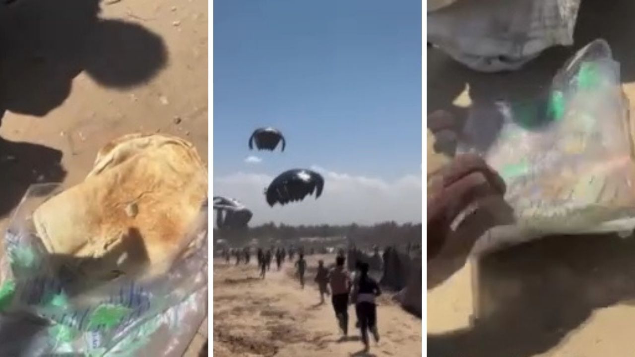 Filistinli aktivist Tayseer Obeid, Gazze Şeridi'ne havadan atılan yardımları almaya çalışan sivillerin yaşadıklarını saniye saniye kaydetti. Görüntülerde, havadan atılan yarım paket ekmeğin ''küflü'' olduğu görülürken, Obeid ''Biz insanız ve bize yapılanlar suçtur" ifadelerinde bulundu.