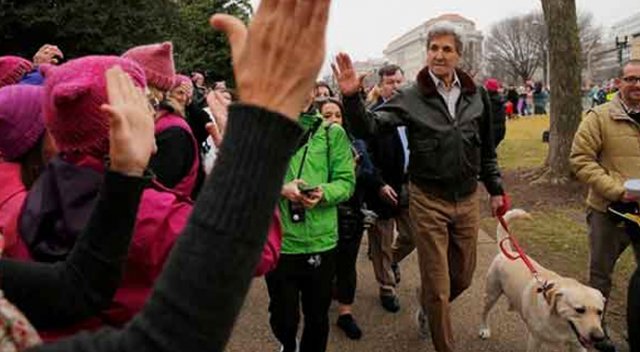 John Kerry, Trump karşıtı gösterilere katıldı