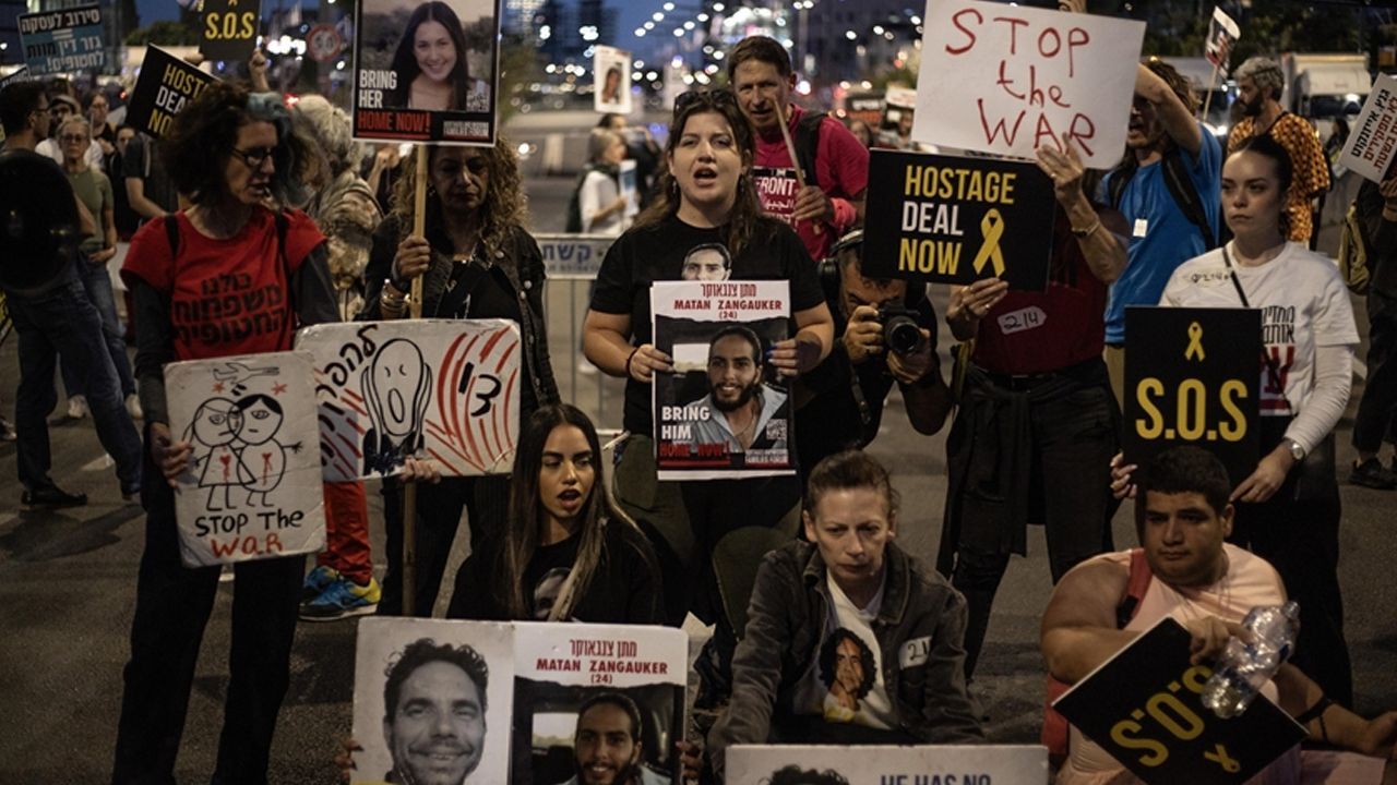Daha sonra binlerce İsrailli, Tel Aviv'de "Esirler Meydanı" adı verilen alanda, Gazze Şeridi'ndeki İsrailli esirlerin serbest kalması için bir anlaşma yapılması talebiyle toplandı.