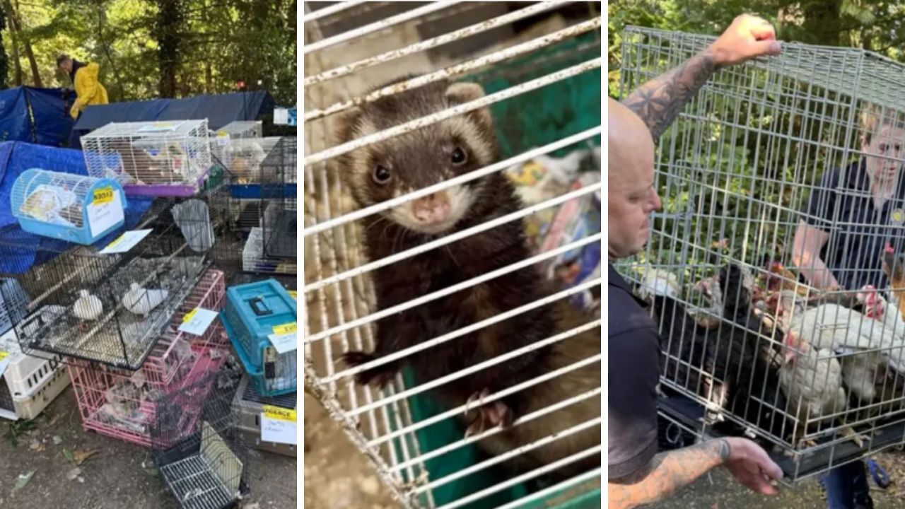 Yetkililer evin içinde tam 206 hayvan buldu. Bunlar arasında horozlar, sincaplar, tavşanlar, güvercinler, ördekler, papağanlar, kirpiler, köpekler, kediler ve hindiler olduğu bildirildi. Hayvanlar kirli, dışkı dolu kafeslerde tutuluyordu ve su ile yiyecek kapları da kötü durumdaydı. Kirden dolayı ev, böcek ve örümceklerle doluydu. Bazı alanlar çöpler nedeniyle girilemez durumdaydı.