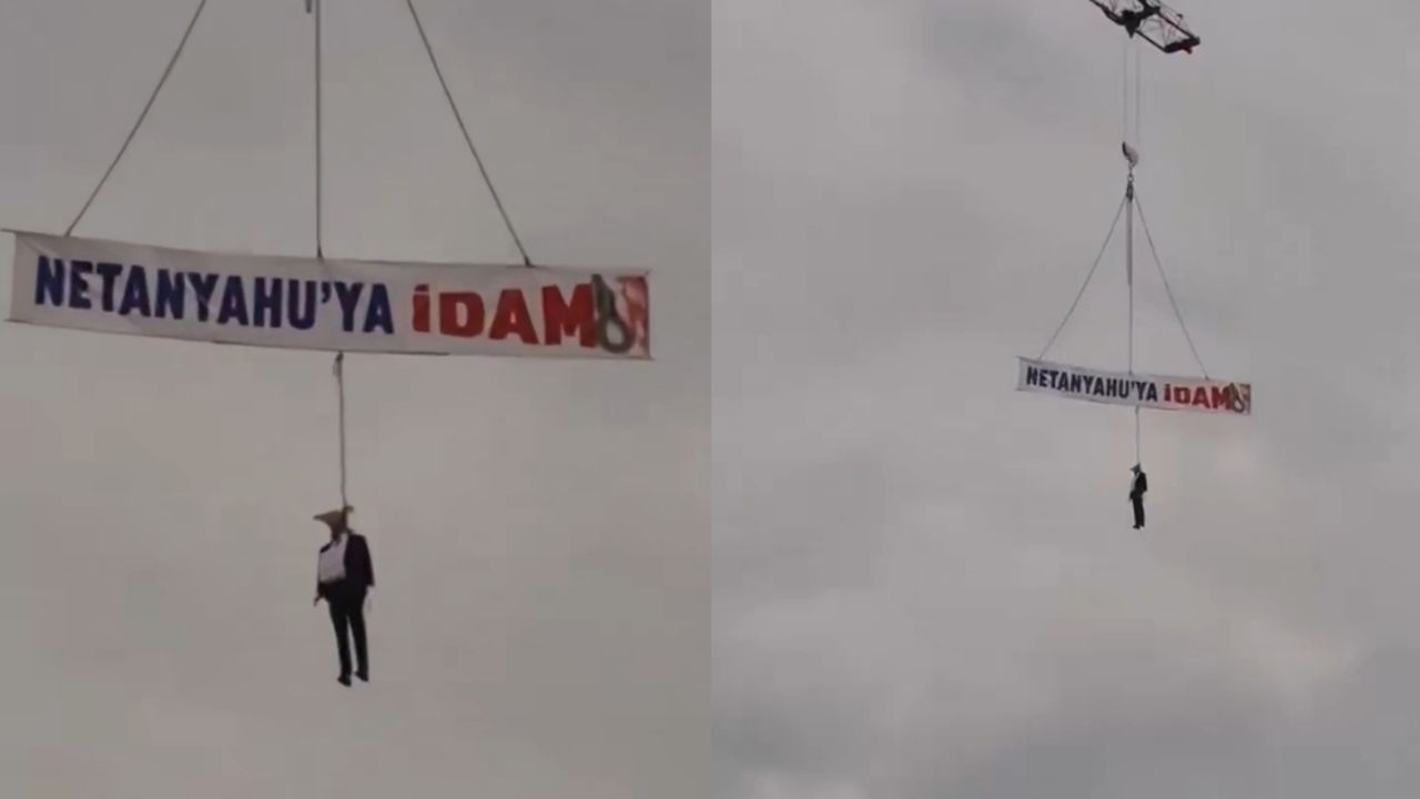 Gazze’de soykırıma imza atan İsrail, bu kez Türkiye’deki sembolik bir eylemden rahatsız oldu. İsrail kamu yayıncısı KAN News ve ülkenin önde gelen medya kuruluşları, Trabzon’da düzenlenen bir gösteri sırasında Başbakan Binyamin Netanyahu’nun maketinin vinçle asılmasını manşetlerine taşıdı.