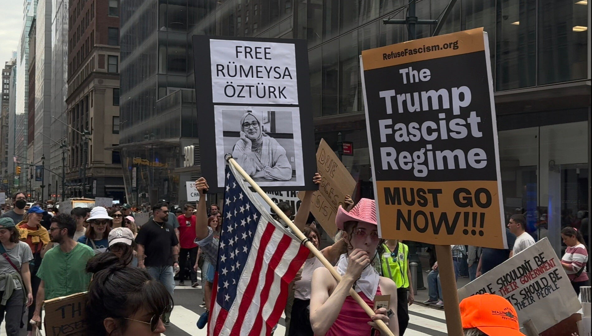 ABD'nin kalbi New York’ta binlerce kişi sokağa döküldü. Başkan Donald Trump ve Hükümet Verimliliği Departmanı’nın başındaki Elon Musk’a karşı düzenlenen protestolarda, halkın öfkesi meydanlara taştı. "Trump kral değil", "Elon Musk istifa", "Özgür Filistin, Özgür Gazze" gibi sloganlarla yankılanan şehirde, gözaltındaki öğrenciler için de özgürlük çağrısı yapıldı. Barışçıl gösteri boyunca kent genelinde yoğun güvenlik önlemleri alındı.