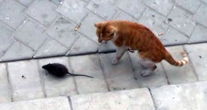 Denizli'nin Pamukkale ilçesinde kedi ile farenin oynadığı anlar hem güldürdü, hem de şaşırttı.