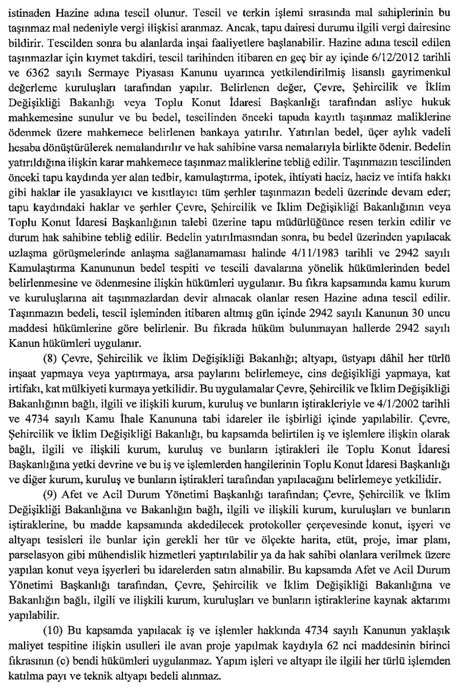 Çevre, Şehircilik ve İklim Değişikliği Bakanlığı; altyapı, üstyapı dâhil her türlü inşaat yapmaya veya yaptırmaya, arsa paylarını belirlemeye, cins değişikliği yapmaya, kat irtifakı, kat mülkiyeti kurmaya yetkili olacak.