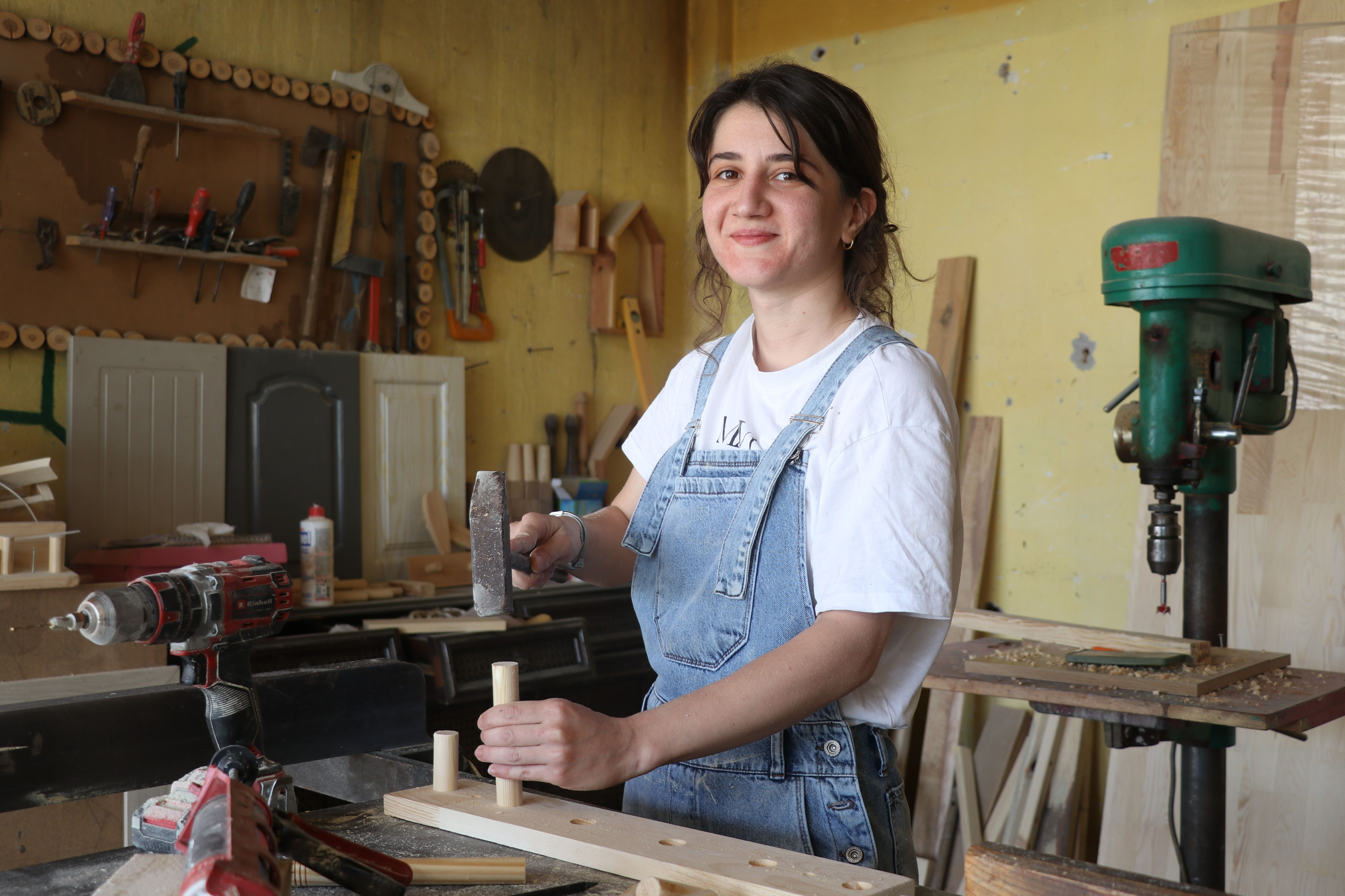 Sivas'ta yaşayan 26 yaşındaki Zeynep Akgül, azmi ve kararlılığıyla çevresine ilham oluyor. Genellikle erkeklerin tercih ettiği marangozluk mesleğini kadın olarak icra eden Akgül, pandemi döneminde babasıyla başladığı meslekte kısa sürede ustalaşarak kendi işini kurdu.