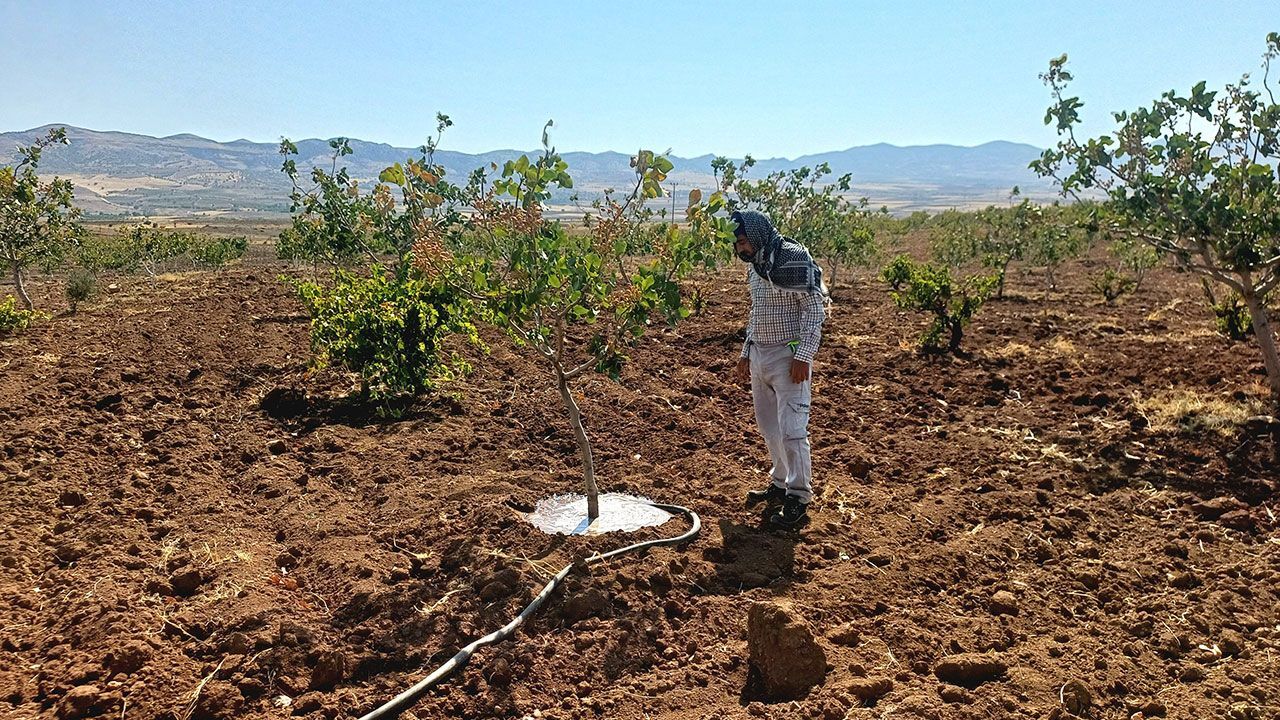 Yetersiz yağışlar ve artan yaz sıcaklıkları, kentteki fıstık üreticilerini sulamaya yöneltti. Verim kaybını önlemek ve ürün kalitesini korumak isteyen üreticiler, sabahın erken saatlerinde traktörlerine bağladıkları tankerlerle dere ve göletlerden su temin ederek tarlalarını suluyor.