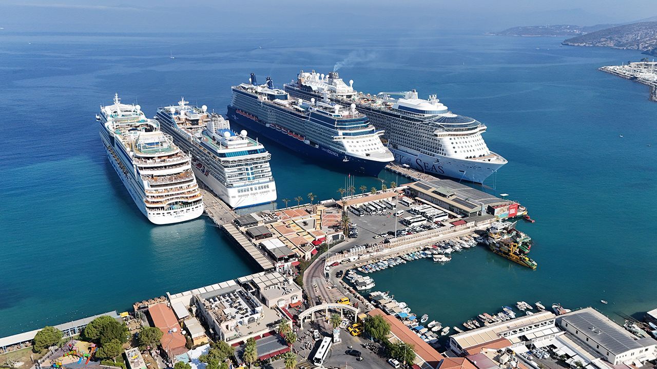 Kruvaziyer turizminin önemli merkezlerinden Aydın'ın Kuşadası ilçesine 4 gemi demirledi.