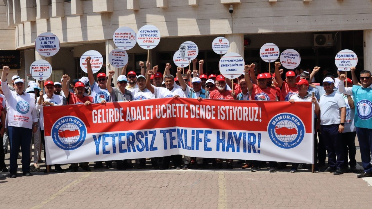 Memur-Sen Konfederasyonu'na bağlı sendikalar, hükümetin 8'inci Dönem Toplu Sözleşme görüşmelerinde memur ve memur emeklilerine sunduğu zam teklifini protesto etti. Antalya'da yapılan eylemde konuşan Memur Sen Antalya İl Temsilcisi Eyüp Bülent Miran, "Refah payı, taban aylığa zam, gelirde adalet ve emekliyi gözeten yaklaşım bu teklifte yok" dedi.