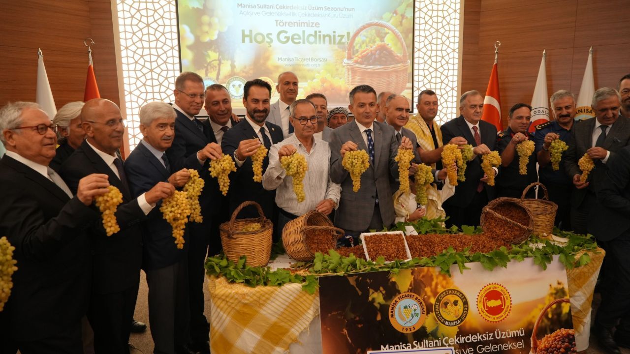 Manisa Ticaret Borsası tarafından Manisa Çekirdeksiz Sultani Üzümde 2025-2026 sezonunun açılışı ve geleneksel ilk kuru üzüm alım töreni gerçekleştirildi.