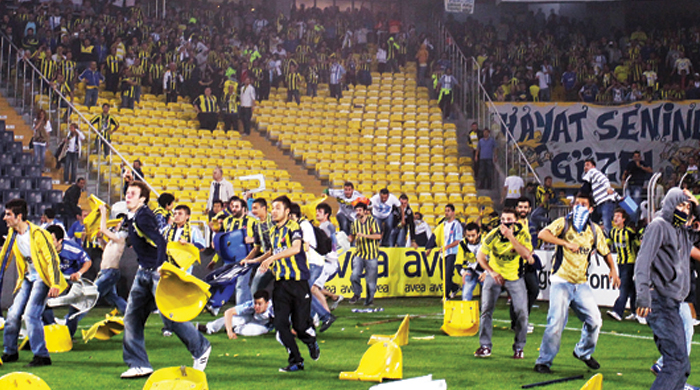 Profesyonel Futbol Disiplin Kurulu (PFDK), Saracoğlu Stadı'ndaki şampiyonun belli olduğu F.Bahçe-G.Saray Süper Final maçı sonrası yaşanan taraftar olayları sebebiyle sarı-lacivertli kulübe ceza verdi. Buna göre F.Bahçe önümüzdeki sezon evindeki 6 maçı seyircisiz oynayacak. Karşılaşmanın bitmesi ve takımların soyunma odasına gitmesiyle birlikte tribünlerde önce çirkin ve kötü tezahürat başlamış ardından 200'ün üzerinde taraftar koltukları sökerek sahaya girmişti. Kurul, aynı maçta sportmenliğe aykırı hareketler için sevki yapılan G.Saray Kulübüne ceza vermezken, Başkan Ünal Aysal'a ise basında yer alan spor ahlakına uymayan açıklamaları sebebiyle 21 gün hak mahrumiyeti cezası kesti.GÜNEŞ VE BURAK'A 3'ER MAÇ