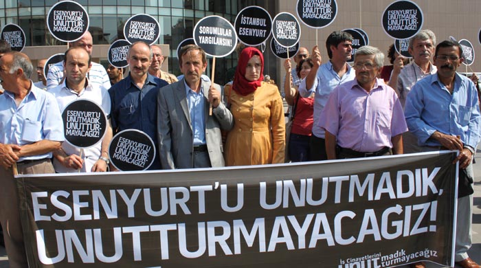 Esenyurt'ta bir alışveriş merkezinin şantiyesinde çıkan yangında hayatını kaybeden işçilerin davasına başlandı. Bakırköy Adliyesi 4. Ağır Ceza Mahkemesi'nde görülen davanın birinci duruşması öncesinde hayatını kaybeden işçilerin aileleri ve İşçi Ölümlerine Son Platformu üyeleri, adliye önünde olayı protesto etti. Ellerinde "Adalet istiyoruz", "Esenyurt'u unutmadık, unutturmayacağız" yazılı dövizler taşıyan grup, "İş kazası değil, cinayet" şeklinde slogan attı. Grup adına basın açıklamasını "Arka Sıralar" dizisi setinde hayatını kaybeden Selin Erdem'in ablası Sema Erdem yaptı. İş kazalarının bir cinayet olduğunu belirten Sema Erdem, "Bizlerin davalarında olduğu gibi, bilirkişi raporunda, iş müfettişleri raporunda da belirtildiği üzere denetim eksikliği, ihmal, kar hırsı ve işçi hayatına kıymet vermemekten meydana geldiği açık. Kaybettiğimiz canları geri getiremeyeceğimizi biliyoruz. Adalet mücadelemizi sürdürmeyi gidenlere boyun borcumuz, geride kalan işçilere yükümlülüğümüz görüyoruz" dedi.11 İŞÇİ BÖYLE ÖLMÜŞTÜ HABERİ İÇİN TIKLAYIN