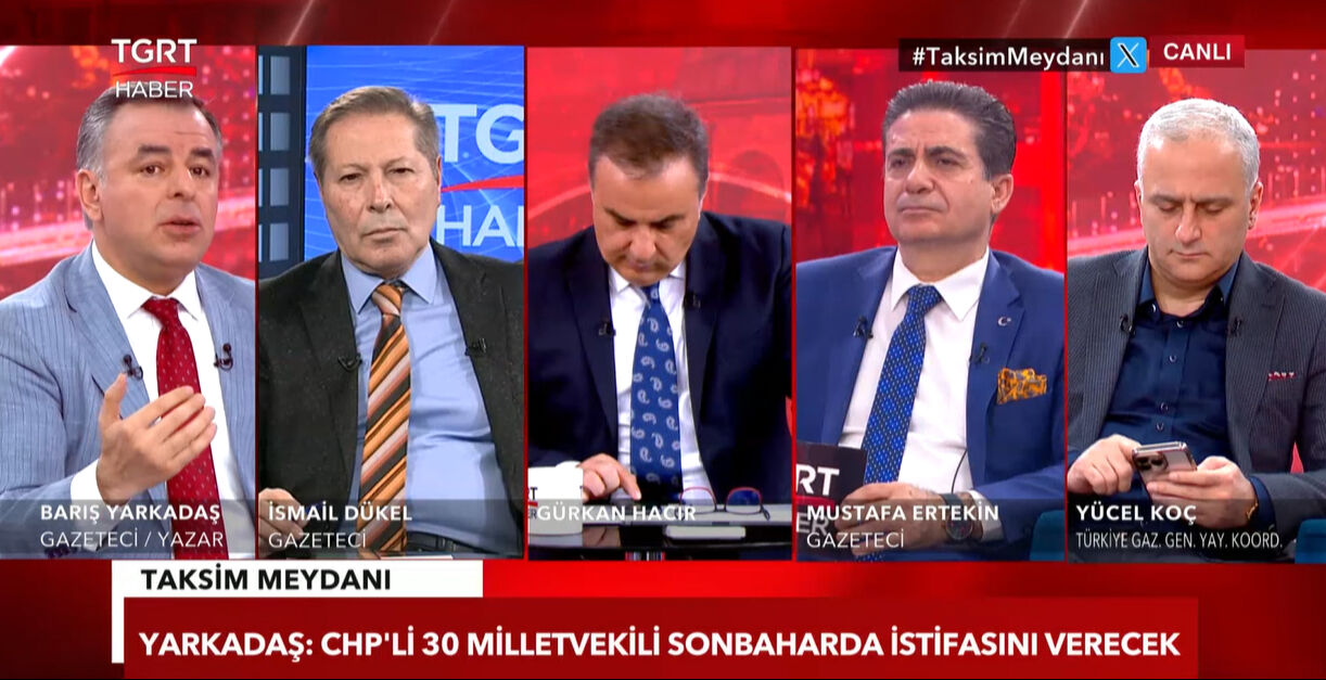 Türkiye'de erken seçim tartışmaları devam ederken gazeteci Barış Yarkadaş, TGRT Haber ekranlarında gündeme damga vuran açıklamalara yer verdi. Yarkadaş, CHP'de erken seçim için gönüllü istifaların olacağını vurgulayarak "Erken seçim talebi erken dile getirildi. CHP’li 30 milletvekili sonbahara doğru istifa edecek" dedi.