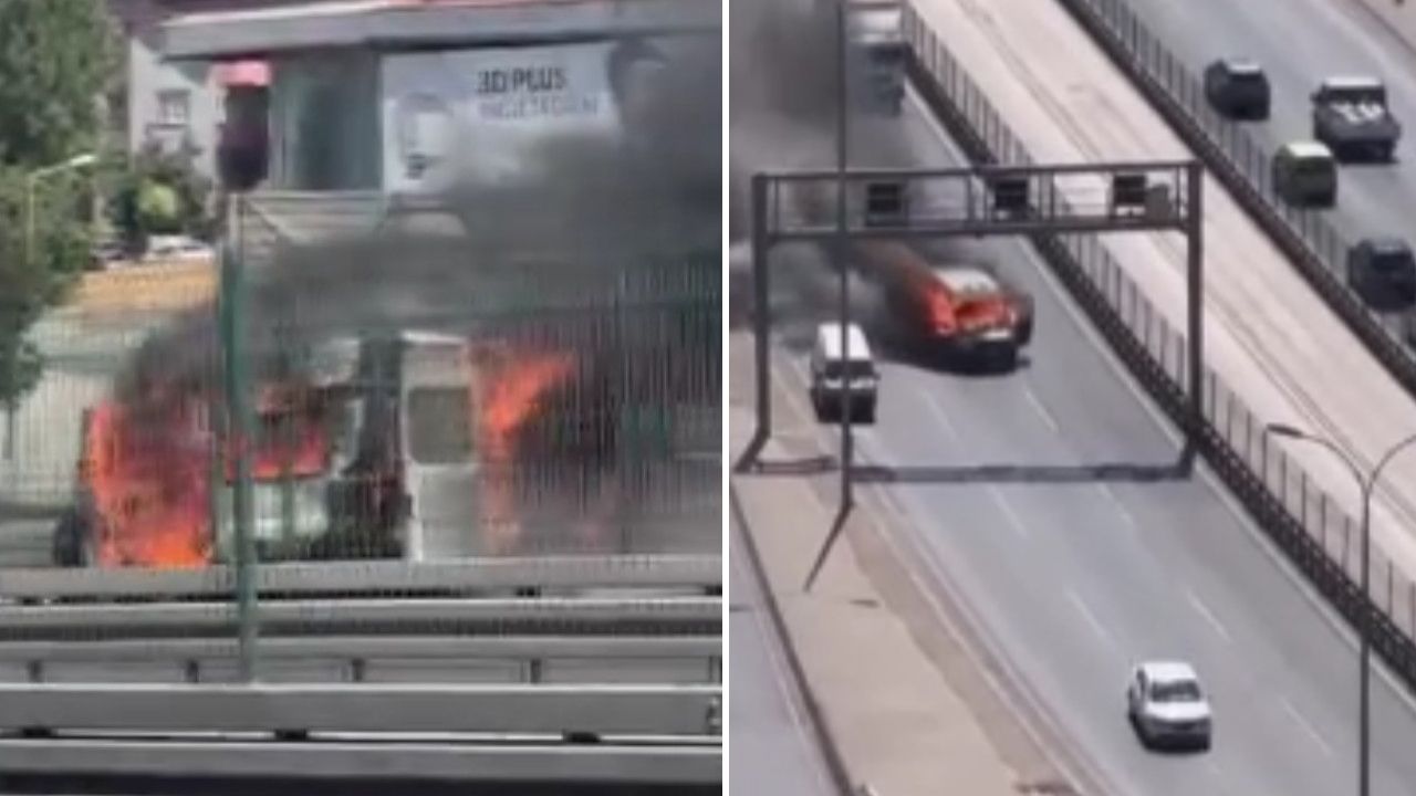 İstanbul'da E-5'te ilerleyen kamyonette yangın çıktı. Trafikte alev alev yanarak ilerleyen kamyonet büyük paniğe neden oldu, o anlar kameralara yansıdı.