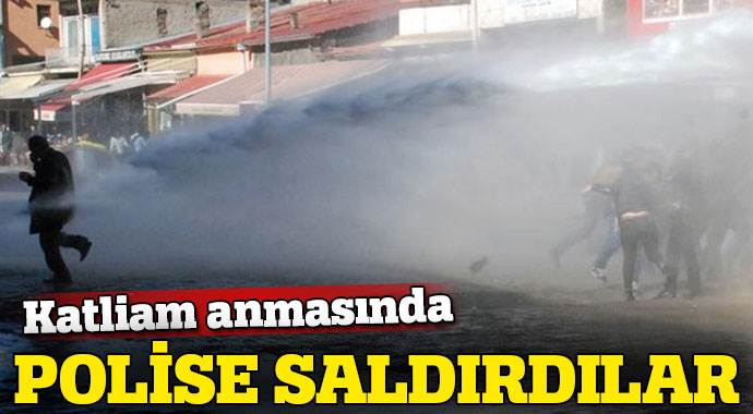 Yumurta ve taş ile saldırı yapılması üzerine polis ekipleri, gruba biber gazı ve tazyikli suyla müdahale etti.