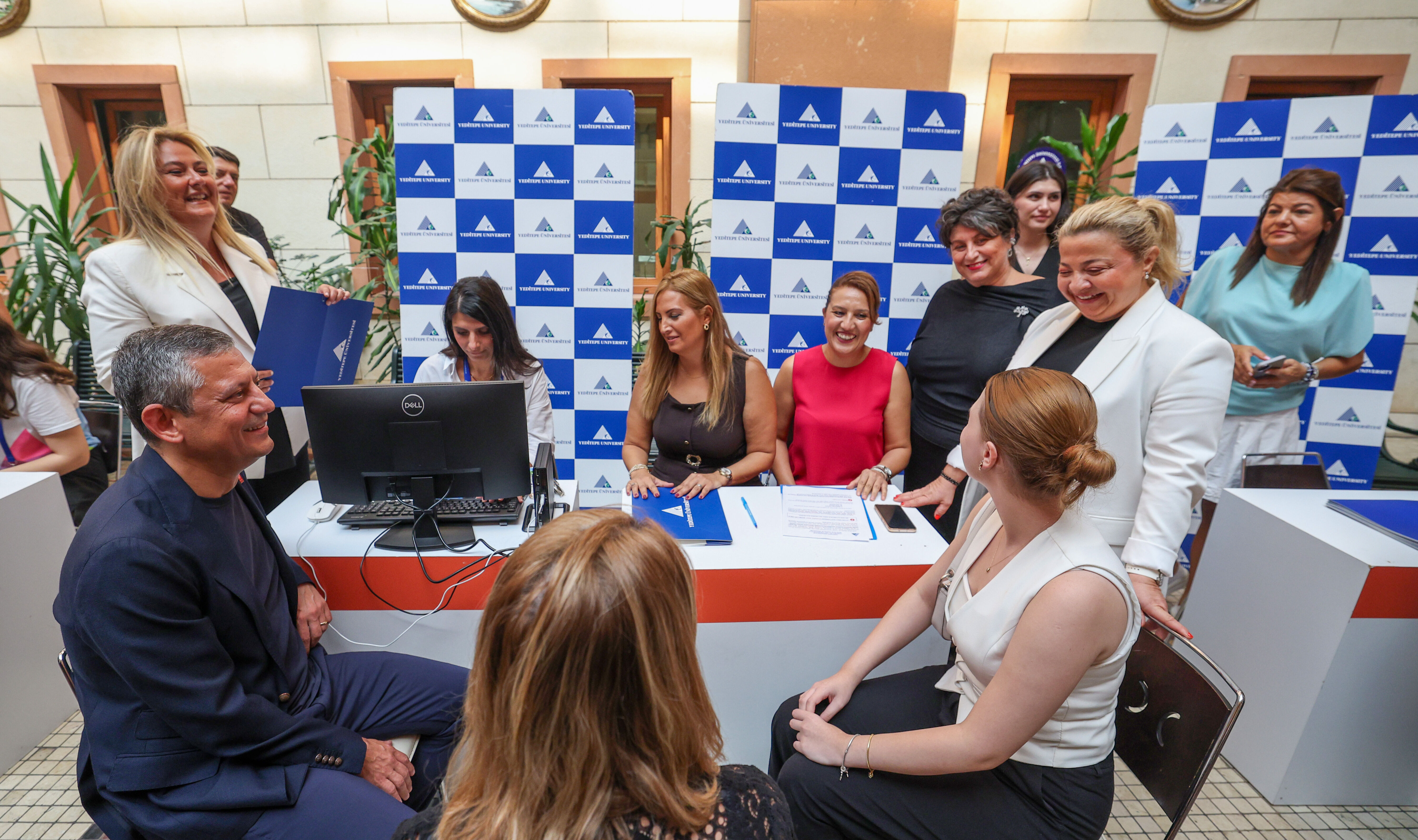 CHP Genel Başkanı Özgür Özel, sınava götürdüğü Zeyrek'in bugün üniversiteye kayıt işlemlerinde de eşlik etti. Özel, babasının mesleğini sürdürmek için Yeditepe Üniversitesi Mimarlık Fakültesini tercih eden Nehir Zeyrek'in kayıt işlemleri sırasında yanında olmak için üniversiteye geldi.