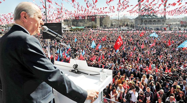 MHP Genel Başkanı Devlet Bahçeli, anayasa değişikliğine ilişkin halk oylaması sürecinde partisince Kayseri Cumhuriyet Meydanı’nda düzenlenen mitingde halka hitap etti. Bahçeli, Türkiye’nin 15 Temmuz’da ele geçirmek istendiğini, işgale kalkışıldığını, iç isyan ve savaş çıkarılmaya çalışıldığını söyledi. Bunu başaramadıklarını belirten Bahçeli, ‘’Darbe teşebbüsüne 80 milyon direndi. Türkiye uçurumdan el birliğiyle kurtarıldı” dedi. “Türkiye’yi kaybedebiliriz” diyerek uzlaşma çağrısı yaptıklarını vurgulayan Bahçeli, şu değerlendirmede bulundu: