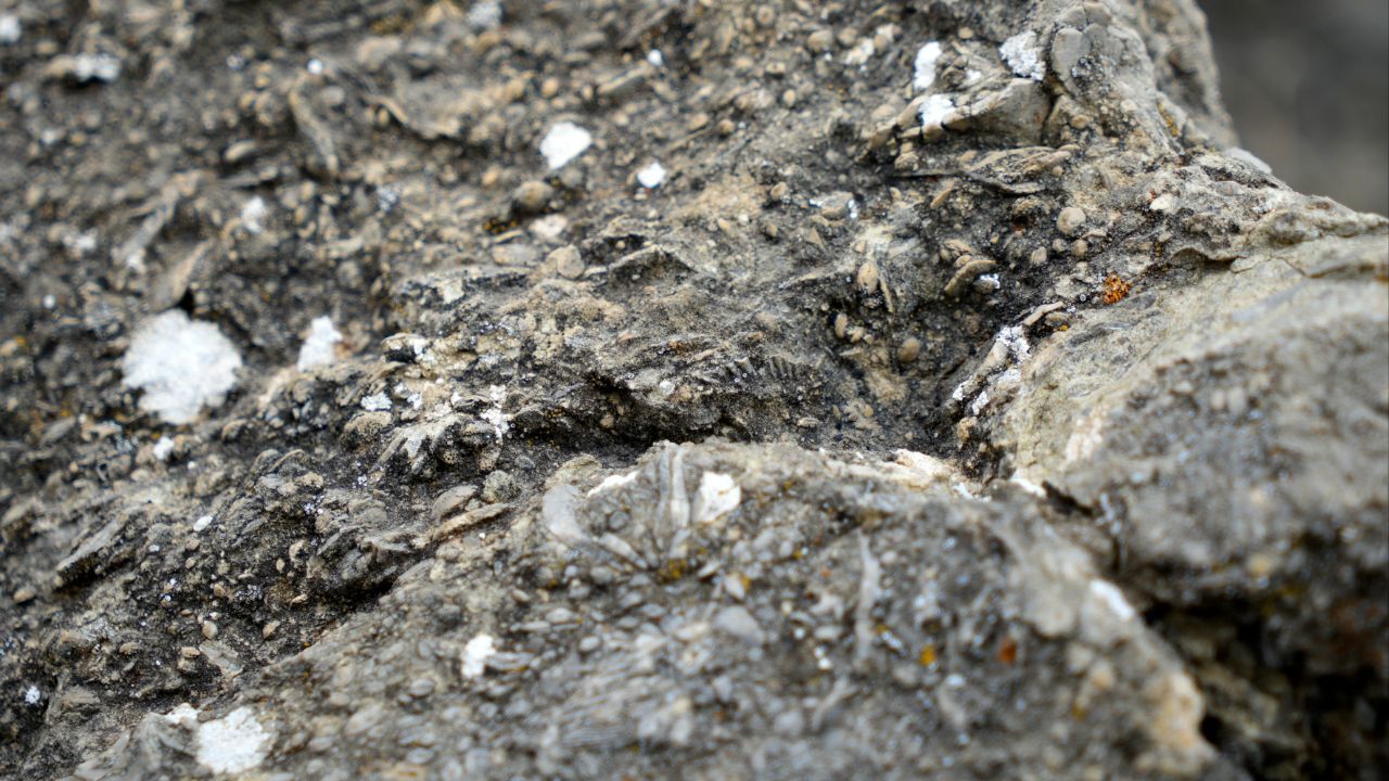 "Bu görmüş olduğunuz kayaç yapısı tamamen fosillerle dolu olan bir ana kayaç yapısı. Buradan kopan birtakım parçalar aşağıda sekiye, bahçeye düşmüş. Buradaki deniz canlılarının o şekilde farkına varıldı. Bu gördüğünüz kayaçlar tamamen baştan aşağı fosille dolu, ilginç bir şekilde. Birkaç tane noktasal olarak değil neredeyse tamamı fosillerle dolu. Aşağıdaki kayaçların izini takiben buraya kadar baktık ve burada ana kaya yatağını bulduk. Bu görmüş olduğunuz kayalar çok ilginç şekilde tamamen fosillerle dolu. Her türlü deniz canlısının fosili var. Yaklaşık üç-dört ay önce fark ettim. Deniz kabuklularının fosilleriyle dolu burası."