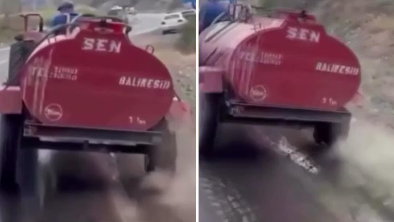 Römorkunun arkasında 'Balıkesir' yazan bir çiftçinin tekerleğinin patlamış olmasına rağmen jant üzerine yangına su taşıdığı o anlar ise "Türk Halkı'nın müthiş dayanışması" başlığıyla sosyal medyada büyük ilgi gördü.