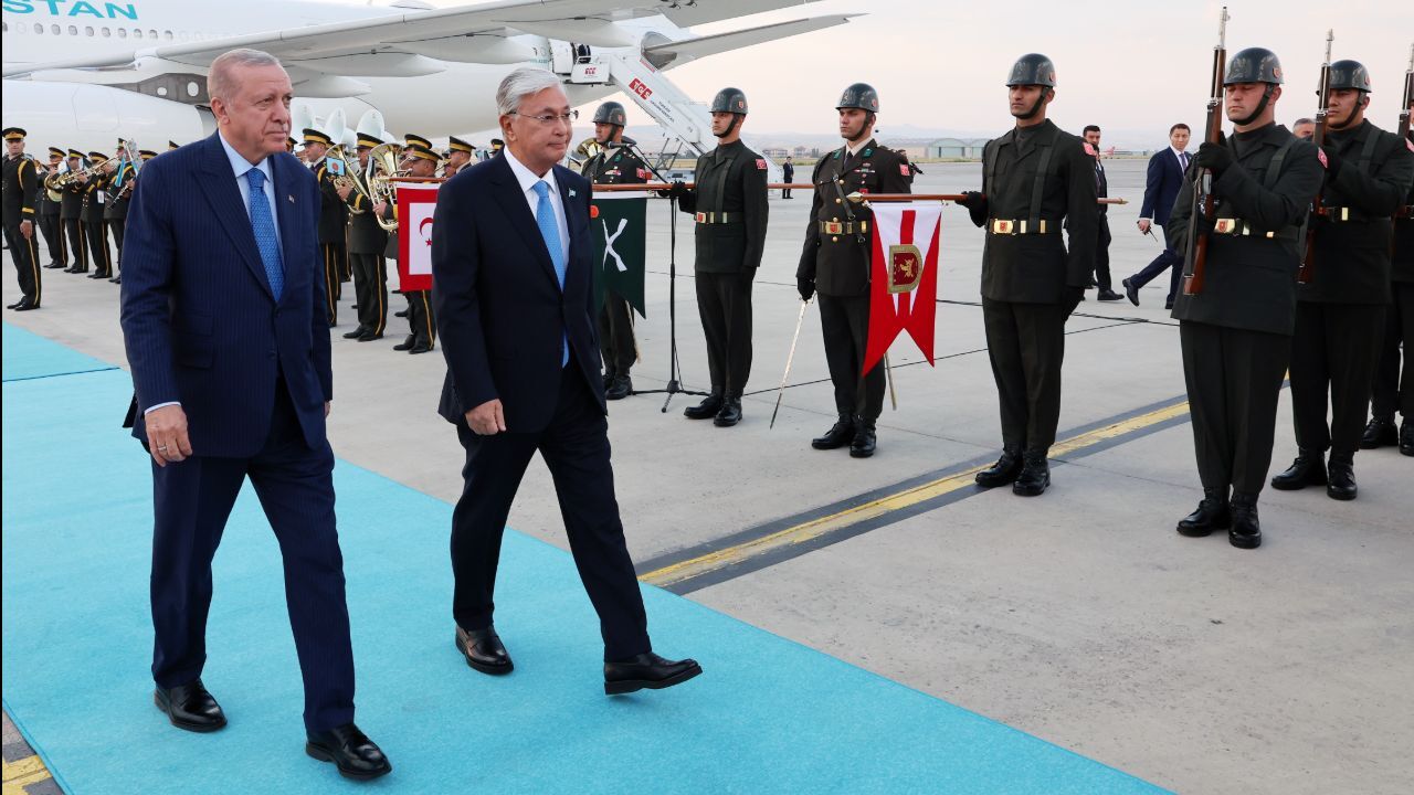 Erdoğan, Kazakistan Cumhurbaşkanı Kasım Cömert Tokayev'i resmi törenle karşıladı.