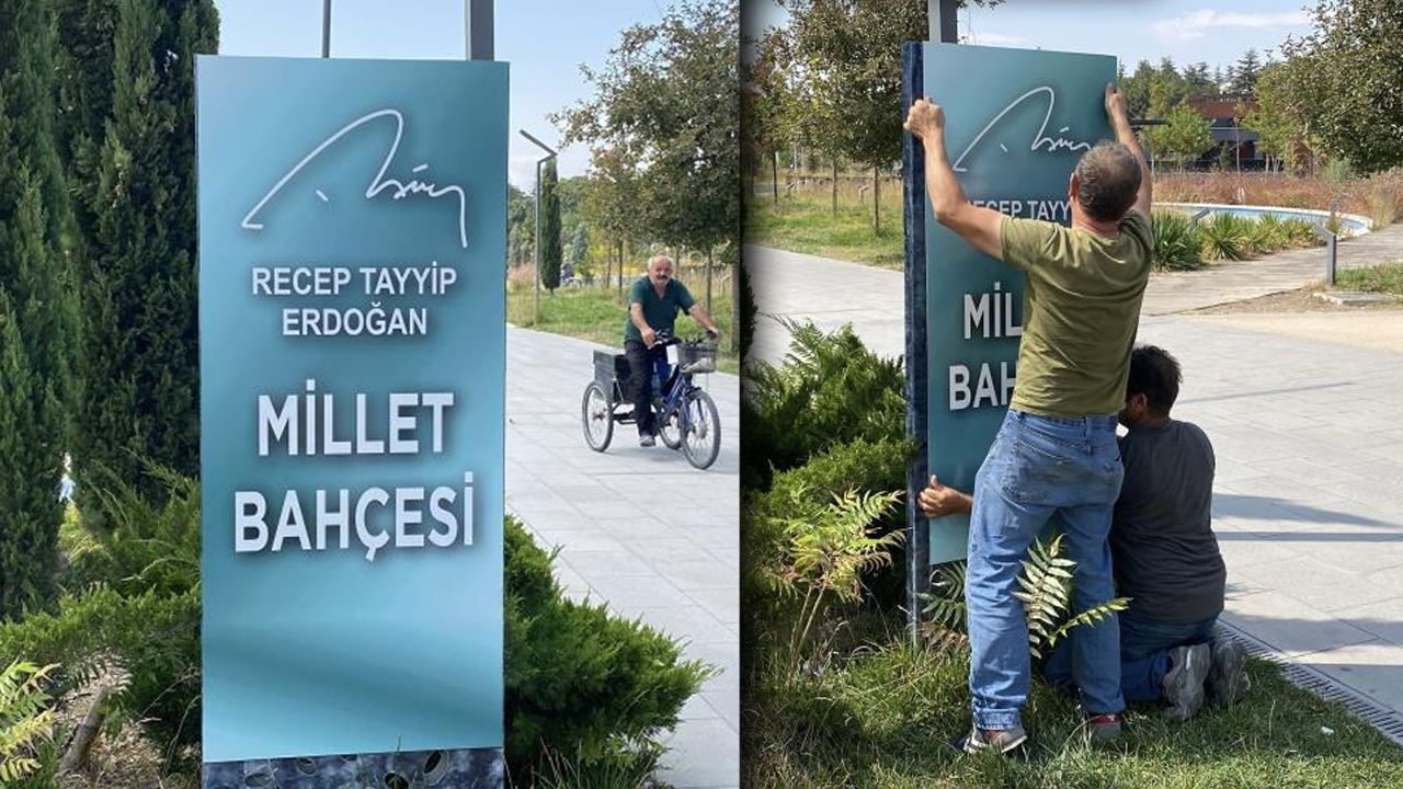 Eskişehir'de kimliği belirsiz kişi ya da kişiler, Recep Tayyip Erdoğan Millet Bahçesi'ndeki tabelalardan Cumhurbaşkanı Erdoğan'ın adını silmeye çalıştı. Durumu öğrenen Vali Hüseyin Aksoy'un talimatıyla harekete geçem ekipler, tabelaları değiştirdi.
