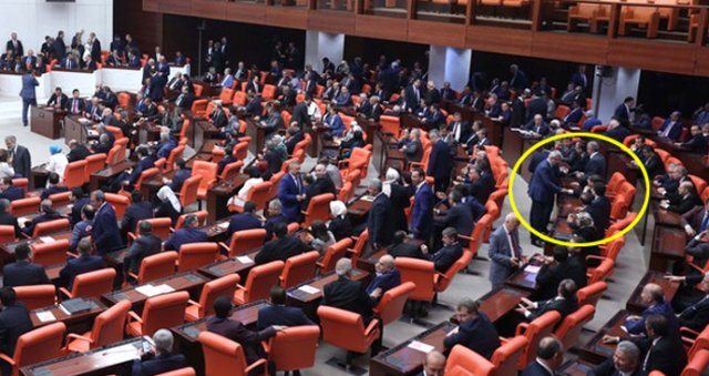 Davutoğlu'nun oturmak için arka sıralarda bir yer seçmesi dikkat çekti. Bazı milletvekillerinin Davutoğlu ile sohbet ettiği görüldü.